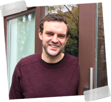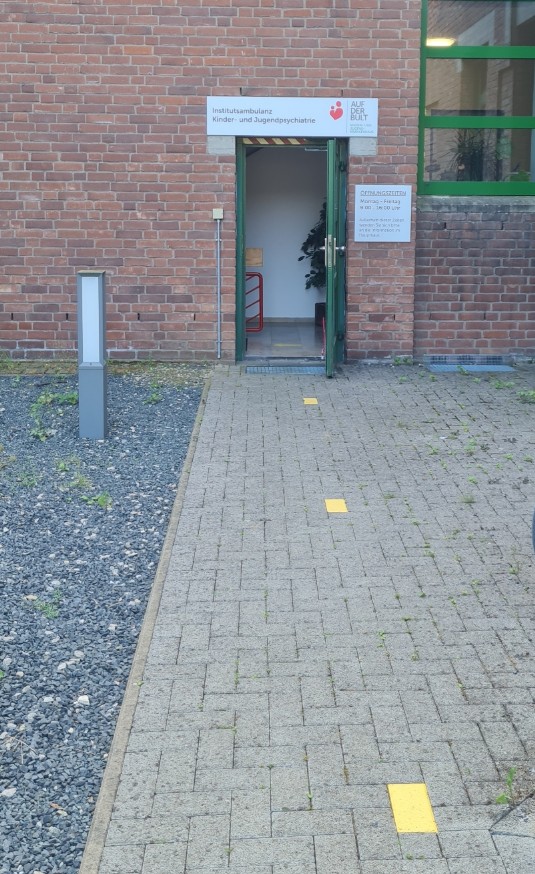 Folgen Sie der gelben Markierung auf dem Gehweg.
